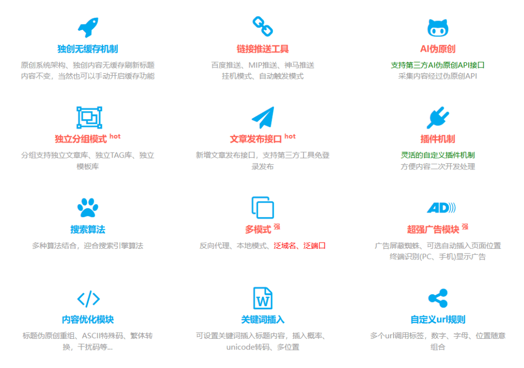 - 敏感词库:支持采集过滤、内容库导入自动过滤、前台实时屏蔽